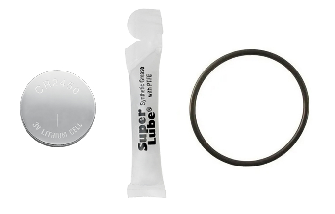 - Includes: 1 brand new 3V lithium cell battery, 1 battery hatch O-ring, and 1 silicone lubricant packet for proper O-ring installation.